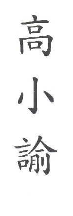 Since Siew-Yue spoke both Cantonese and Mandarin, she used two forms of her name in Chinese: Gou Siu Yü and Gāo Xiăoyù. Both are written with the same three characters. They are shown here in the traditional way, reading from the top downwards.